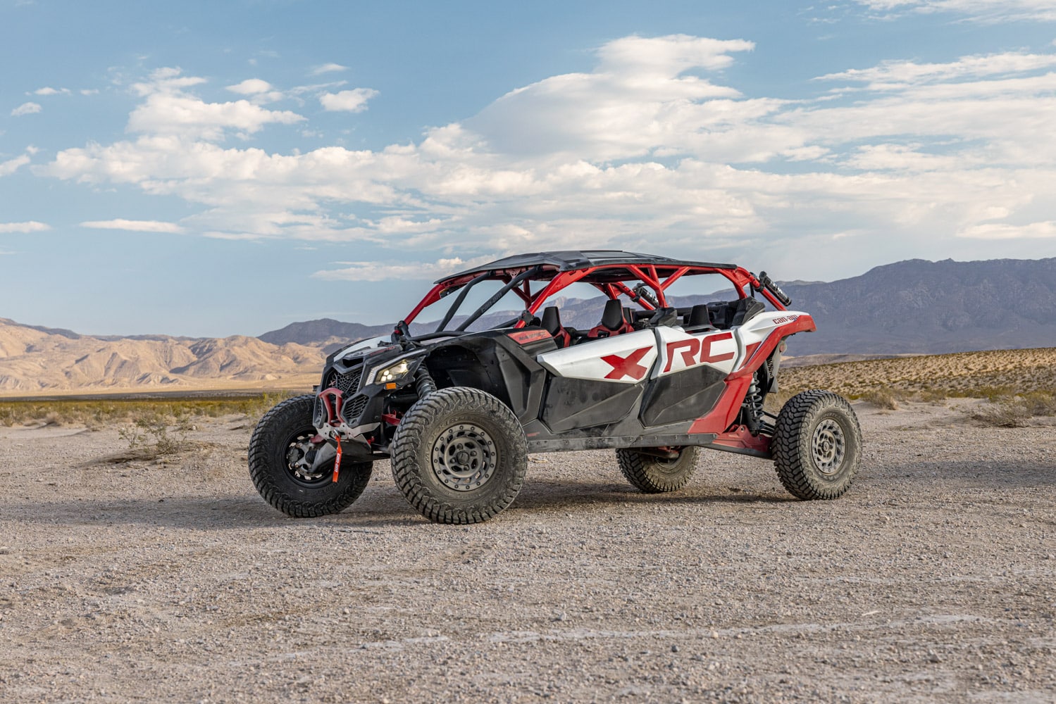 The Maverick X3 MAX X rc Turbo RR is the industry’s first purpose-built four-seat rock crawling side-by-side, and is equipped with everything riders need to get straight on the dirt and tackle what lies ahead. Equipped with a 200 hp Rotax Advance Combustion Efficiency (ACE) 900cc turbocharged engine, 22-inches of suspension travel at both ends thanks to Fox Podium 2.5 shocks upfront and 3.0’s RC2 with internal bypass in the rear, and 32-inch Maxxis Liberty tires mounted onto 15-inch aluminum beadlocked wheels, the Maverick X3 MAX X rc Turbo RR is ready for action right off the showroom floor. It also features front bumpers, high-molecular-weight polyethylene (HMWPE) underbody protection, and a 4,500-lb winch to get riders out of tricky spots on the trail.